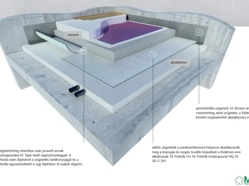 A padlófűtés sem okoz gondot, az ezek alá is alkalmazható szigetelőanyagok megakadályozzák a felületi rezgések továbbítását a födémen.