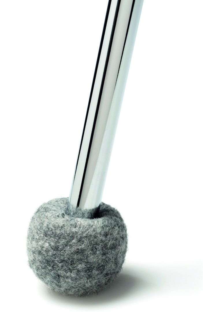 Sima felületű, egyöntetű padlóburkolatokhoz használható, belső intenzív kiképzésű nemez felületű hangelnyelő papucs, 20-27 mm átmérőjű széklábakhoz.