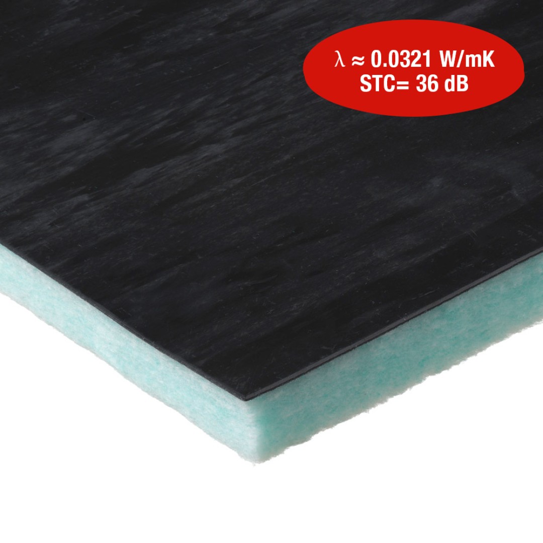 Poliészterszálas kiváló hanggátló és hangelnyelő panel elasztomer membránnal.