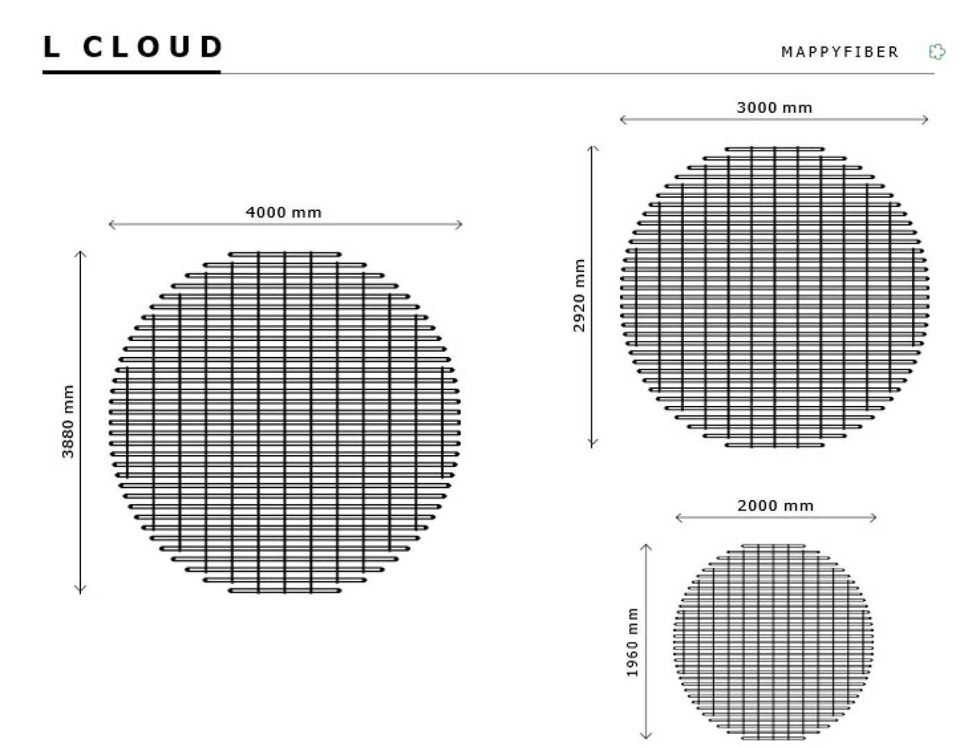 A Mappyfiber® L Cloud poliészter szálas sziget, teherhordó fémszerkezettel. Jellegzetes formával rendelkezik, nagy- és kis környezetben egyaránt használható, mivel a méretek testre szabhatóak. A termék többféle színben kapható: alapanyagként fehér, fekete vagy zöld, vagy a RAL-skálából választott színnel festve.