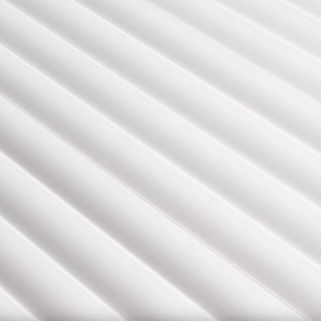 M. Fiber Flat Linear Curved akusztikus fehér színű fali panel kiváló hangelnyelő burkolat, festhető RAL színekre. Az festett felületre vonatkozik.