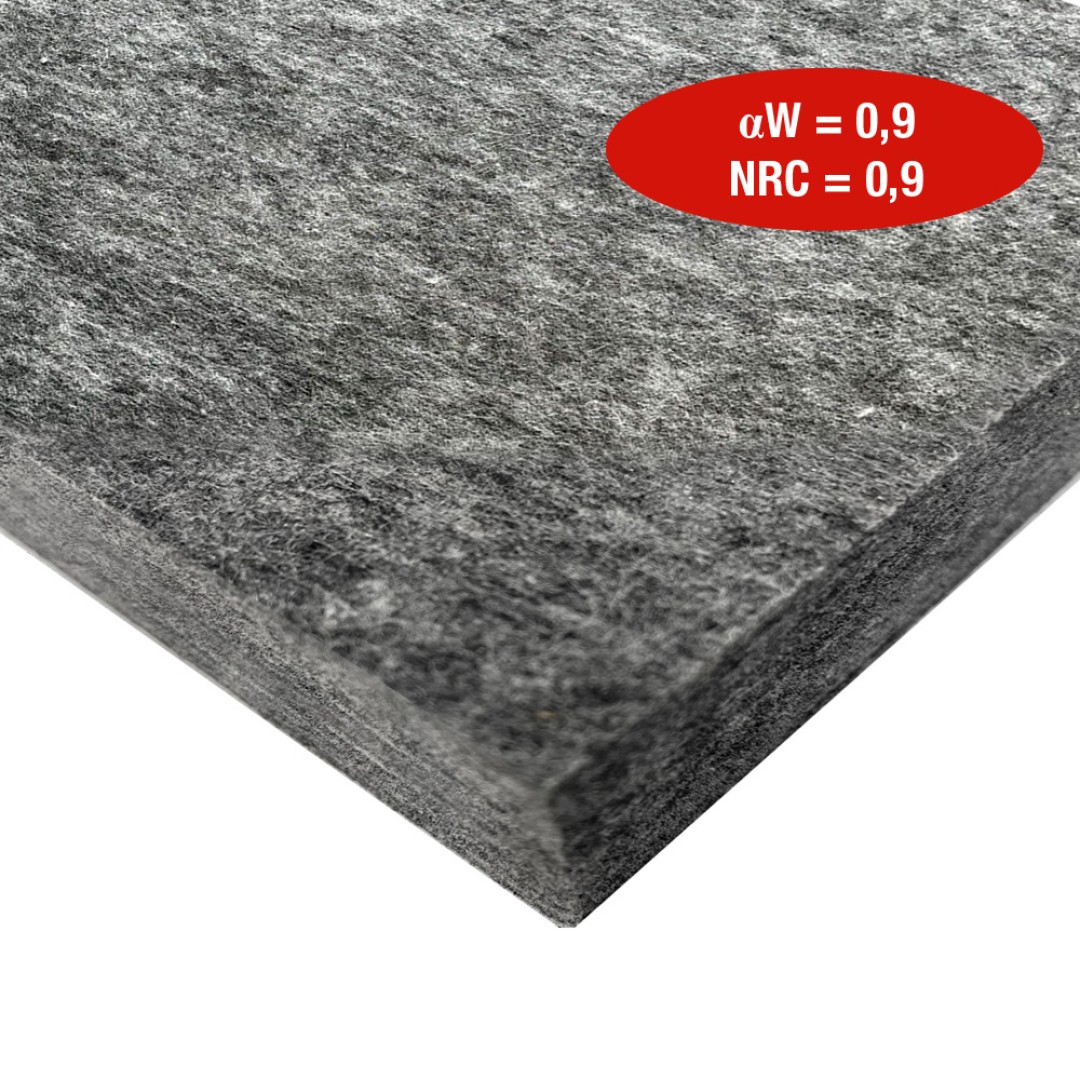 Kiváló hangelnyelő, hang- és hőszigetelő tulajdonságú, újrahasznosított alapanyagú panel, szürke-melange színben.